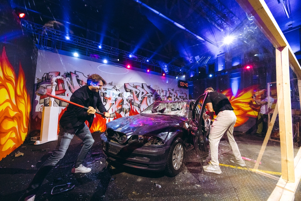 Besondere Highlights waren die kreativen und spaßigen Aktivstationen, die alle ein Ziel hatten: Stress loswerden! Ob beim Auto-Zerstören mit Baseballschlägern, beim Live-Graffiti mit Wiener Künstler:innen, in der Schreikabine oder beim Armdrücken mit Profis vom Österreichischen Armdrück-Verband – hier konnte man auf innovative Weise Druck abbauen.